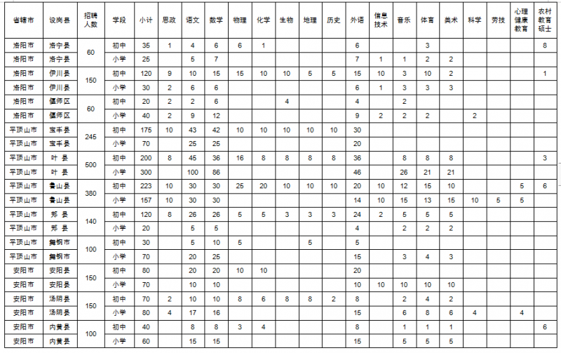 2021年全省共招聘特崗教師18000名。具體(ti) 崗位設置參見《河南省2021年特崗教師招聘崗位設置》。