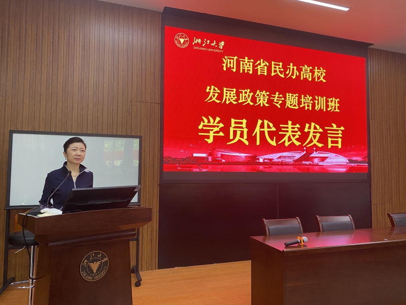 7月14日至19日,由kaiyun体育登入口主辦、浙江大學承辦的河南省民辦高校發展政策專(zhuan) 題培訓班在浙江杭州舉(ju) 行。全省44所民辦高校的近百名舉(ju) 辦人、校長參加了此次培訓。省教育廳黨(dang) 組成員、副廳長陳垠亭出席結業(ye) 儀(yi) 式並講話,省教育廳二級巡視員董玉民出席開班儀(yi) 式並講話,省教育廳政策法規處主要負責同誌參加培訓,省教育廳政策法規處處長徐軍(jun) 保主持開班和結業(ye) 儀(yi) 式。