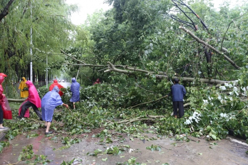 鄭州大學後勤人員及時清理倒地的樹木(學校供圖)