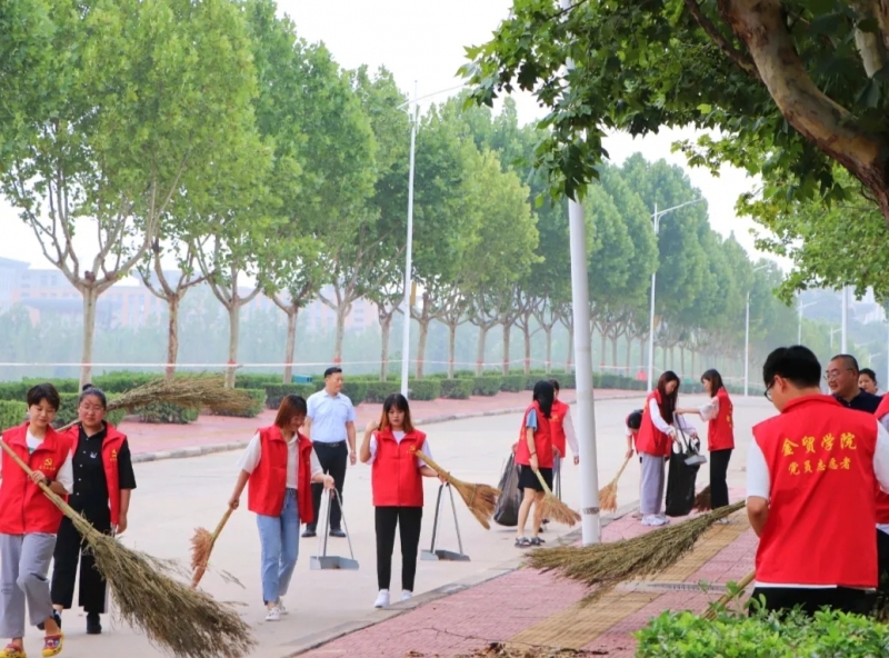 7月23日下午,金貿學院部分留校黨(dang) 員幹部在黨(dang) 委書(shu) 記呂鵬的帶領下在外語樓至大禮堂主幹道、5號宿舍樓、14號宿舍樓進行安全隱患排查和團體(ti) 勞動。在呂書(shu) 記的帶領和指導下,大家進行了負責區域的劃分,同學們(men) 分工明確、團結協作,認真地巡視檢查每一處角落,他們(men) 有的拿著大掃帚清掃落葉、有的在認真撿拾白色垃圾、有的在用力拔除青草、為(wei) 守護校園付諸行動。同學們(men) 忙碌的身影、專(zhuan) 注的姿態、流下的汗水成為(wei) 校園裏最靚麗(li) 的風景線。在呂書(shu) 記的率領下,經過將近兩(liang) 個(ge) 小時的排查和打掃,大家順利完成整潔校園的安全排查和清理工作。
