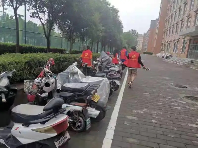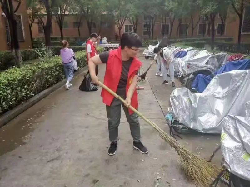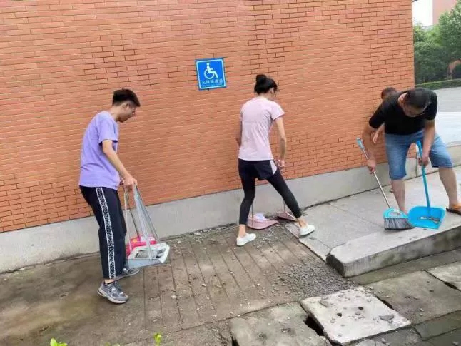 參與(yu) 此次活動的師生手持掃帚,垃圾袋等衛生工具,前往外語樓,24號宿舍樓,北苑餐廳等地,對暴雨過後產(chan) 生的樹葉、雜物等進行及時清掃、整理及衛生清潔消毒等工作。大家分工合作,卯足幹勁,有的清掃路麵、有的清理堵塞排水溝、下水道的落葉,有的幫忙把電車排列整齊,一個(ge) 個(ge) 或蹲或屈的身影奏響了一曲勞動之歌,積極清掃校園的每一個(ge) 角落。在大家的共同努力下,我校部分路段恢複了往日的潔淨,方便了師生的日常出行。
