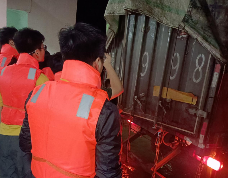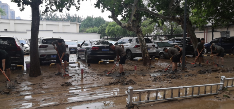7月22號,雲(yun) 商學院教官團冒著風雨,前往未來路和緯二路進行抗洪救災。