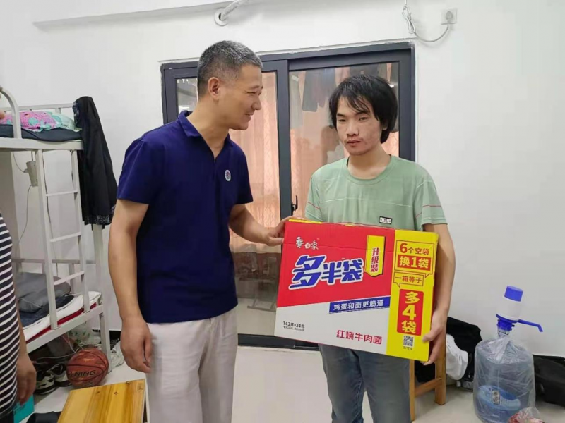 7月22日,由學院黨(dang) 總支書(shu) 記李靜帶隊,迅速采購礦泉水、掛麵、充電寶等生活急缺物資,送至受災教師家中。同時開通受災應急綠色通道,隨時為(wei) 受災教師提供幫助。副院長劉輝赴華銳光電產(chan) 業(ye) 有限公司線場課堂看望學生,詢問學生的學習(xi) 、生活保障等情況,並為(wei) 他們(men) 送去生活必需品。