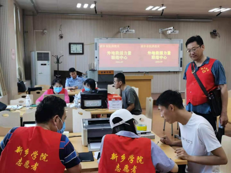市應急管理局借用新鄉(xiang) 學院場地,設立新鄉(xiang) 市外地救援力量聯絡中心後,新鄉(xiang) 學院第一時間組織人員為(wei) 該中心提供誌願者服務。市應急管理局在學校門口設立“抗洪救災引導點”,學校為(wei) 該中心架設專(zhuan) 線並提供設備,3D打印學院騰出展播廳和測試中心當作物資倉(cang) 庫。黨(dang) 委組織部也在第一時間發動全校教職員工,尤其是黨(dang) 員參與(yu) 到救援幫扶誌願者活動中來。通知一經發出就有超過三百名黨(dang) 員、群眾(zhong) 參戰,大家的情緒空前高漲。