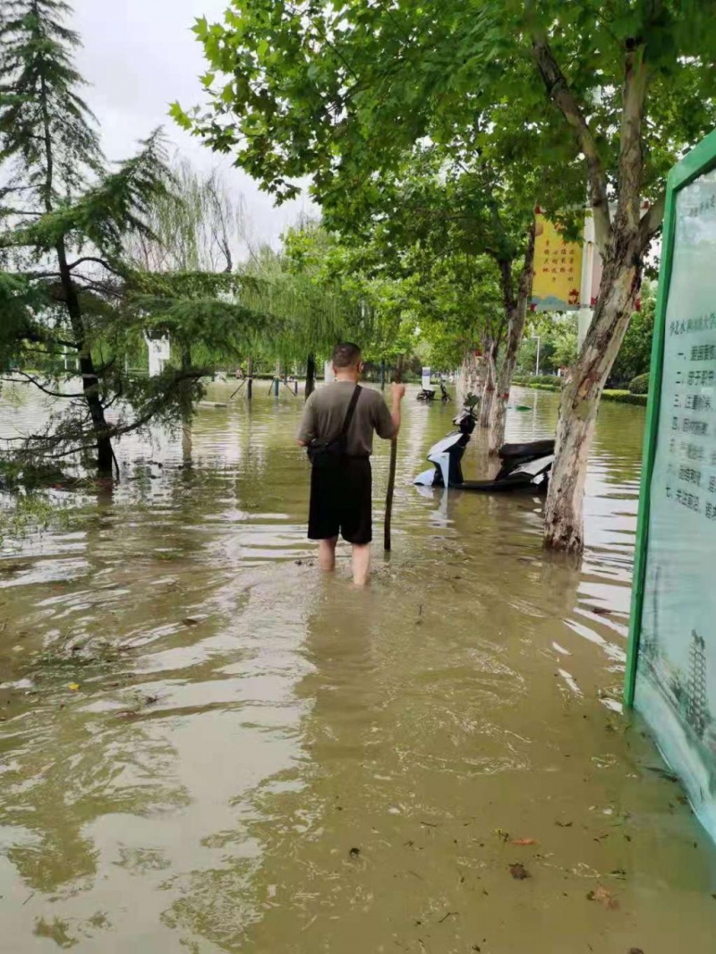 加強巡視確保安全。不間斷巡視校園各處險情及水位,在無任何防護裝備和器具的情況下,組織人員涉水巡查校園及教師周轉房區域水位。在教師周轉房樓下水中解答各位教師、家屬對校園周邊道路情況等疑問,安撫相關(guan) 人員情緒。水退後及時清理東(dong) 北門淤泥。
