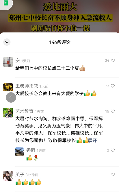 這一幕,恰好被路人抓拍並上傳(chuan) 到朋友圈。事後得知,這位奮不顧身救人的男士是鄭州市第七高級中學校長王保軍(jun) 。