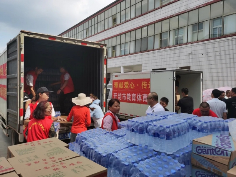 7月24日,開封市教育體(ti) 育局聯合中如建設河南集團公司、市教育體(ti) 育投資集團,精心謀劃,多方籌措了2000件飲用水、1000箱方便麵、400箱牛奶、200件燒雞等救災物資,來到受災嚴(yan) 重的尉氏縣和祥符區進行慰問。