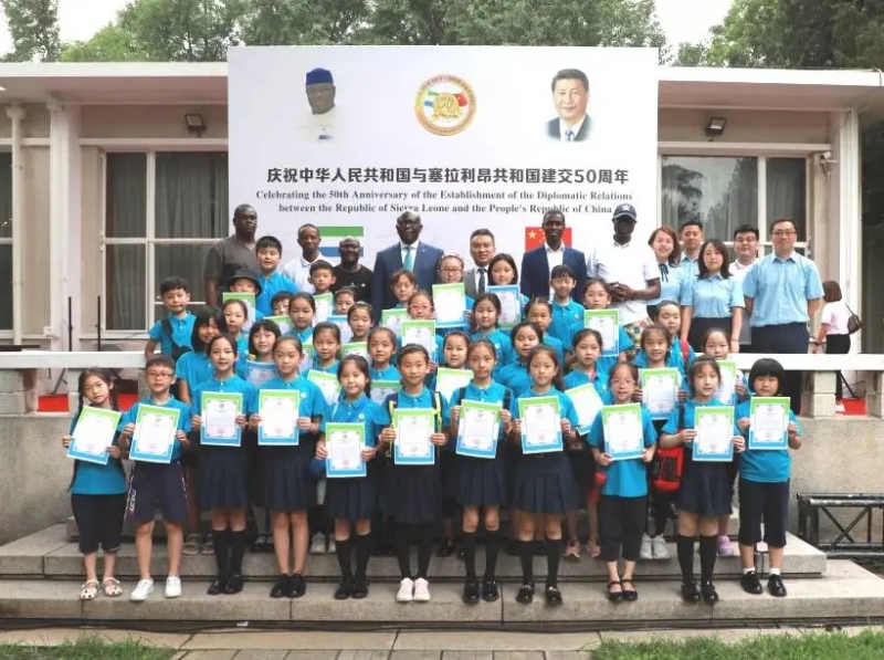 2021年7月28日,鄭州市金水區緯五路第二小學教育集團作為(wei) 中華人民共和國與(yu) 塞拉利昂共和國建交50周年紀念活動的受邀學校,一行43人來到塞拉利昂共和國駐華大使館,參加中塞建交50周年慶典活動。
