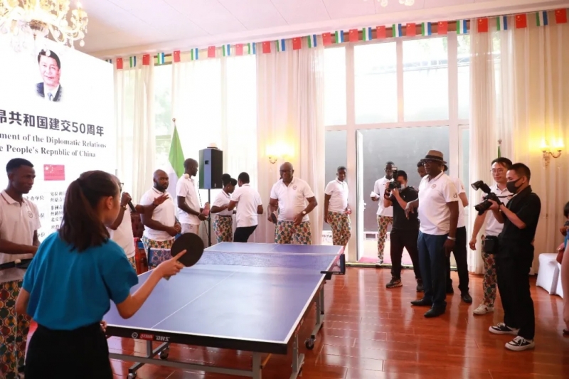 小球轉動大球,一場乒乓賽,一段溫馨時光。孩子們(men) 和塞拉利昂駐華大使歐內(nei) 斯特·恩多馬希納以及大使館友人一起進行乒乓球友誼賽。