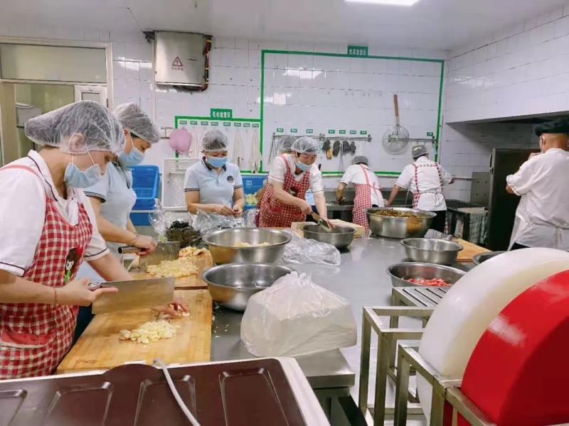 說幹就幹,7月24日,鄭州土豆花開芳菲地園、土豆花開溪溪穀園、鄭州聖愛教育集團、鄭州金水區萌昇幼兒(er) 園、安特思庫成長館、鄭州二七區天成幼兒(er) 園、童年時光幼兒(er) 園、鄭州市二七區天紅幼兒(er) 園等8家姊妹幼兒(er) 園聯合起來,分擔了給900多名戰士做頓可口晚飯的任務。雖然放假了,但園長一聲召集,園所在鄭的老師們(men) 立馬集結,分工、采買(mai) 、準備食材、準備餐具,園長、老師、後勤、家屬齊上陣,忙得熱火朝天。