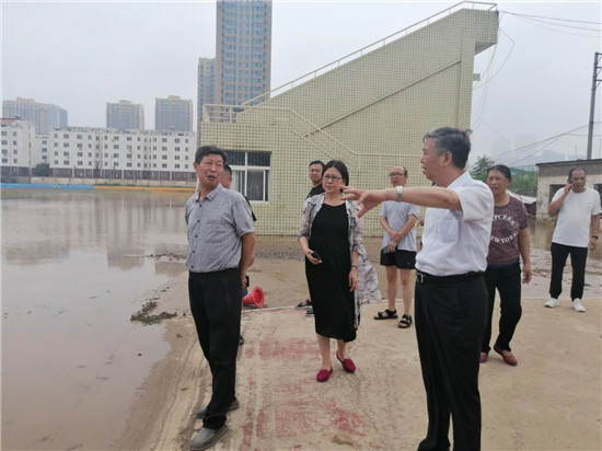 7月21日下午,鄭州工程技術學院黨(dang) 委書(shu) 記周春輝、校長盧奎,黨(dang) 委副書(shu) 記、工會(hui) 主席蘇煒現場查看該校英才、金河校區防汛情況。