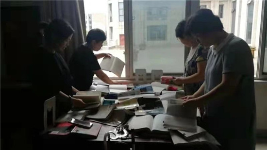 7月23日上午,圖書(shu) 館流通部群裏通知自願去金河圖書(shu) 館流通部打掃衛生。該校幾位老師不怕髒,不怕累,用手當鐵鍁,徒手把這些粉漿撮到盆裏。幾位老師接著清理被雨水浸濕的圖書(shu) ,並把這些書(shu) 一頁頁翻開,晾在桌子上。這些人的無私奉獻、默默守護,幾十萬(wan) 冊(ce) 的圖書(shu) 才免遭雨淋。
