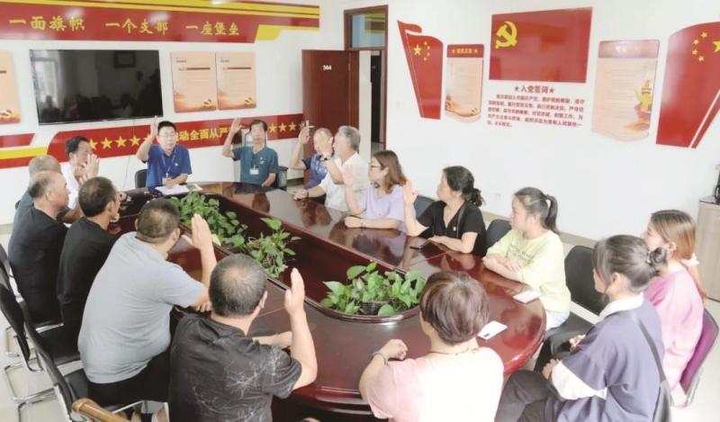 牧野鎮人民政府鎮長劉斌同誌參加臨(lin) 時黨(dang) 支部成立儀(yi) 式,帶領全體(ti) 黨(dang) 支部成員麵對黨(dang) 旗莊嚴(yan) 宣誓,表達了愛黨(dang) 、愛國、愛人民的初心和照顧好轉移群眾(zhong) 的決(jue) 心。