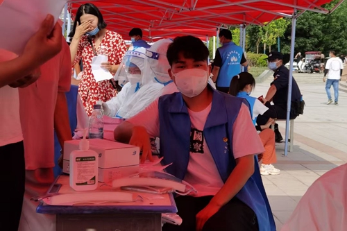 工學院應用電子技術1901班的張永輝是工學院學生六支部預備黨(dang) 員。麵對卷土重來的疫情,他堅持黨(dang) 員先行的原則,主動加入核酸檢測誌願服務隊伍,協助醫護人員工作,發揮黨(dang) 員的先進模範帶頭作用,為(wei) 社會(hui) 和廣大人民群眾(zhong) 貢獻一份青春力量!