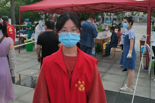 會(hui) 計學專(zhuan) 業(ye) 1910班的相雯穎是一名黨(dang) 員發展對象,同時也是此次揚州疫情的一名誌願者。在第一次全市做核酸檢測的時候,她被醫護人員和誌願者們(men) 的辛苦所感動,立即主動報名參加了社區的疫情誌願者服務。相雯穎說:“第一次這麽(me) 近距離的接觸疫情,我感受到了醫務工作者的偉(wei) 大,作為(wei) 一名大學生,雖然沒有專(zhuan) 業(ye) 的醫學知識,無法去前線衝(chong) 鋒陷陣,但我一定盡自己的全力幫助身邊的人!”