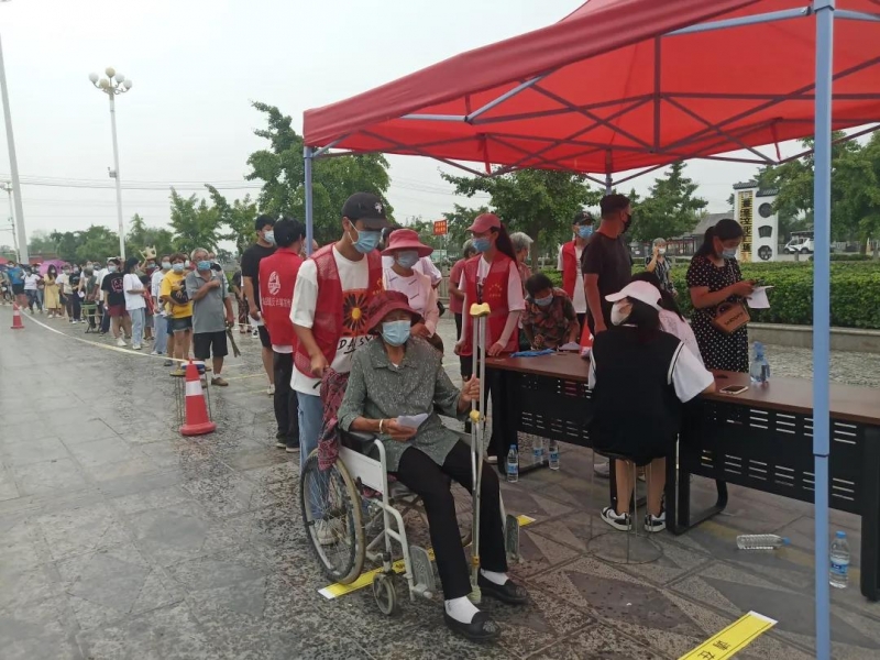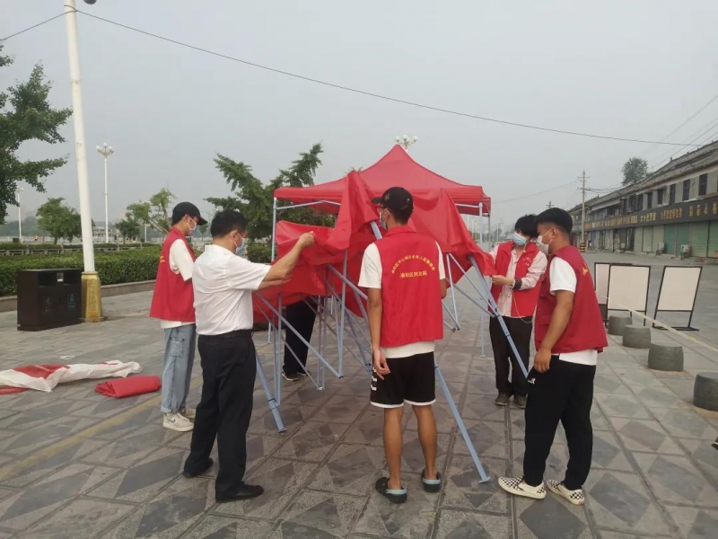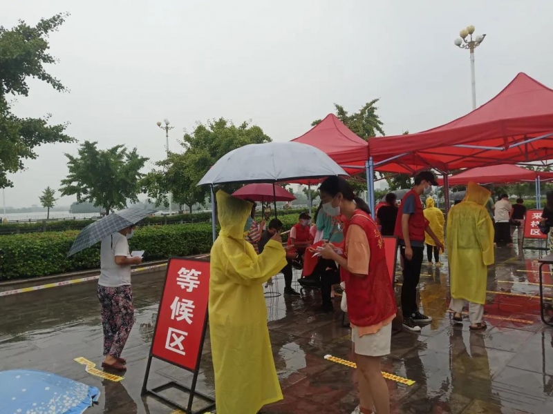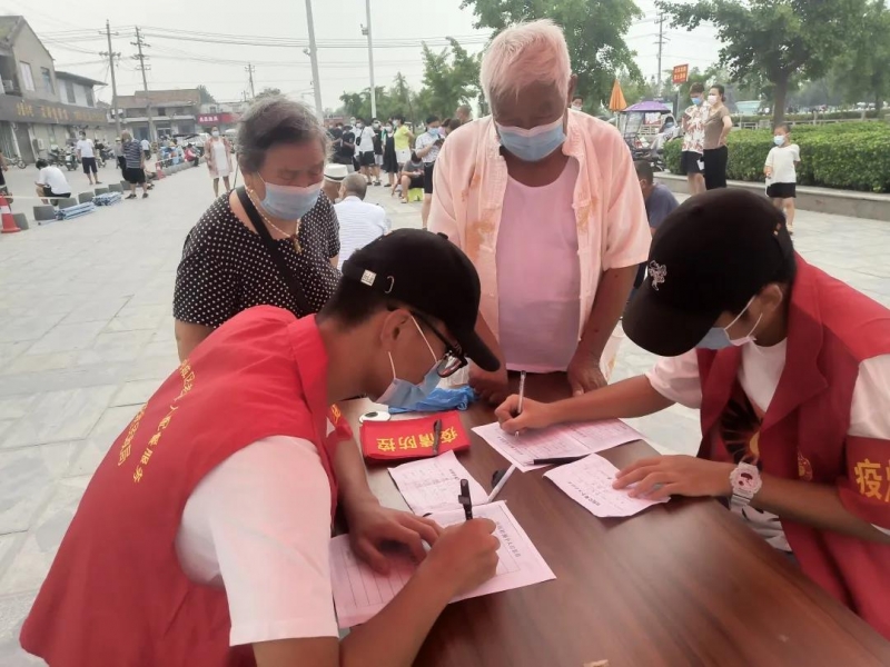 這支誌願者隊伍是由淮陽中學劉華東(dong) 老師組建的。劉華東(dong) 看到疫情檢測工作人員人手不夠的實際情況,就積極動員組織返鄉(xiang) 回來的大學生,參與(yu) 到誌願者隊伍中來。這支隊伍是7月底才組織,8月1日就正式開始服務,短短十幾天,誌願者隊伍從(cong) 幾人擴大到幾十人。