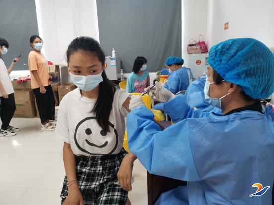 在疫苗接種點,不少學生在家長的陪同下有序排隊等候接種,工作人員在現場維持秩序、指導登記。在完成測量體(ti) 溫、查驗健康碼、詢問流行病學史及家長、孩子共同簽訂知情同意書(shu) 後,學生們(men) 陸續進入接種室完成疫苗接種,整個(ge) 過程秩序井然。