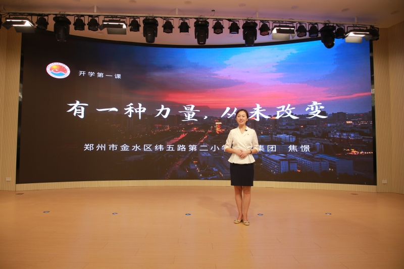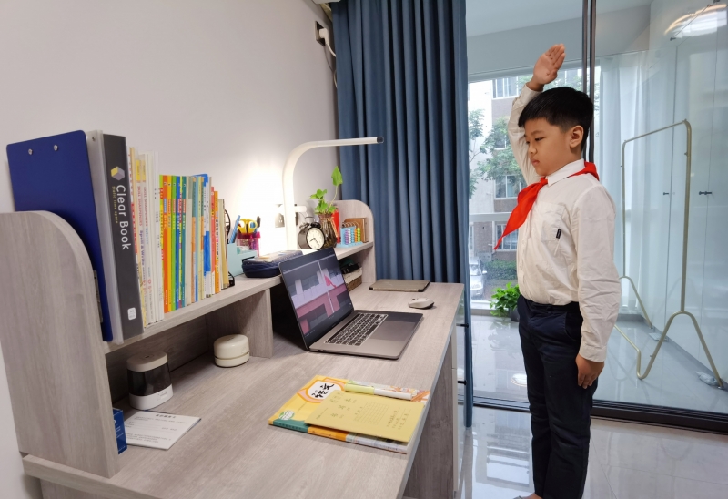 9月1日上午8點,鄭州市金水區緯五路第二小學師生齊聚雲(yun) 端,進行2021—2022學年上學期線上開學典禮。伴隨著雲(yun) 升旗視頻,學生們(men) 向國旗莊嚴(yan) 敬禮,緯五路二小黨(dang) 總支書(shu) 記、校長焦憬為(wei) 學生們(men) 上開學第一課《有一種力量,從(cong) 未改變》 (通訊員 張亞(ya) 龍 攝 )