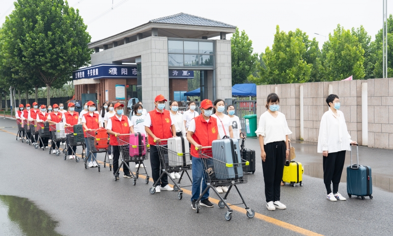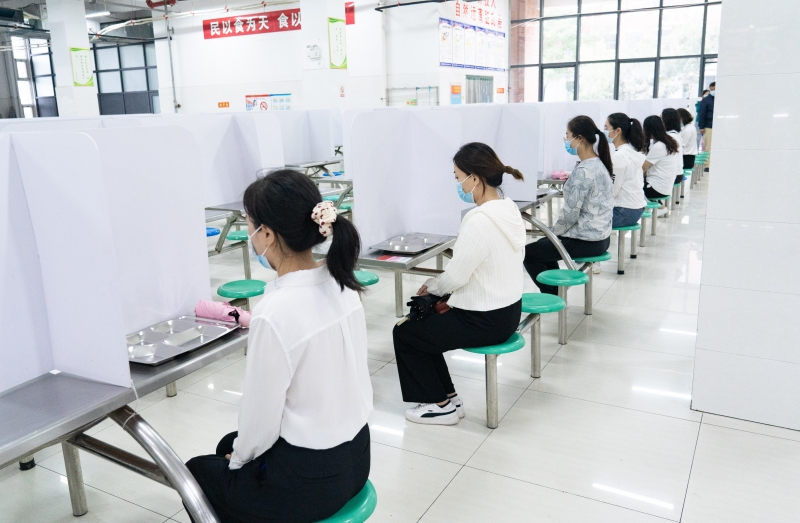 為(wei) 提高學校疫情防控應急處置能力,確保開學平安,8月31日,濮陽市開學前疫情防控模擬演練觀摩活動在濮陽市第一高級中學舉(ju) 行。學校黨(dang) 員和共青團員組成誌願服務隊模擬使用小推車幫助學生運送行李;學生取餐後徑直到指定位置間隔就坐,取下口罩,快速就餐,全程無交流,就餐完畢,戴好口罩從(cong) 指定出口迅速離開餐廳,餐廳每天三餐後分別進行常規消毒 (通訊員 劉東(dong) 攝)