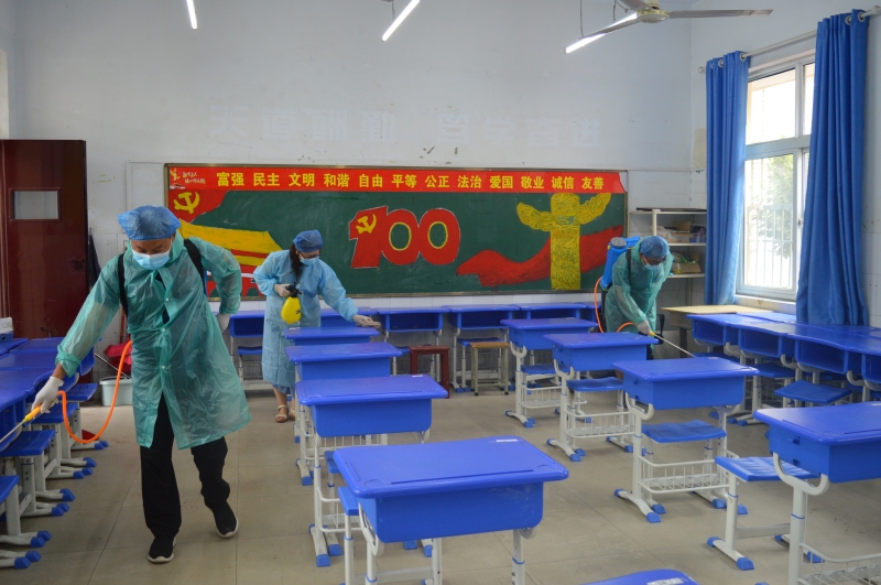 8月28日,為(wei) 做好開學前疫情防控工作,新鄉(xiang) 市第三十中學疫情防控人員對學校所有教室地麵和桌凳進行消殺工作,為(wei) 學生開學防疫做足充分準備,給學生和家長一個(ge) 健康、放心的學習(xi) 環境 (通訊員 徐鵬飛 攝)
