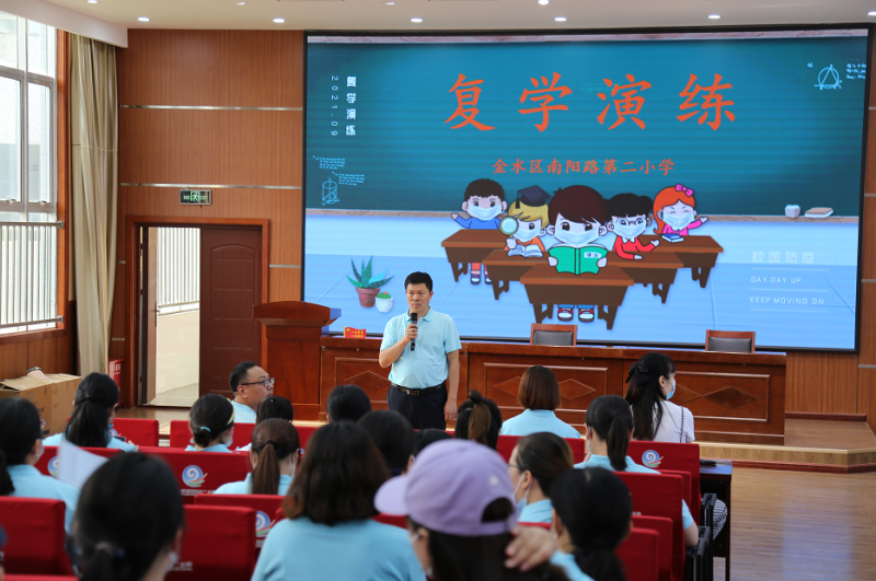 9月15日下午, 鄭州市金水區南陽路第二小學開展新冠肺炎疫情防控複學演練,紮實做好秋季開學疫情防控工作,保障新學期師生身體(ti) 健康與(yu) 生命安全。