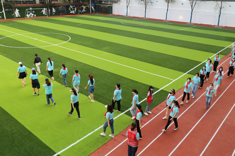放學離校時,各班學生按照指定位置列隊,錯峰離校。行進中,班與(yu) 班間隔不少於(yu) 三米。演練結束後,工作人員對各班進行全麵消殺。