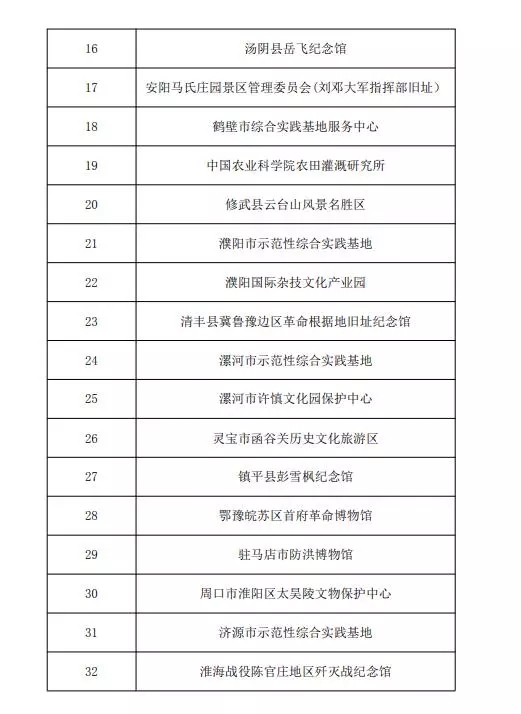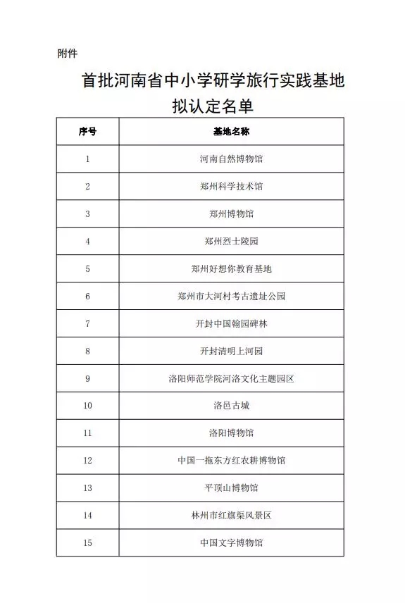10月8日,kaiyun体育登入口發布消息,按照《kaiyun体育登入口 河南省文化和旅遊廳關(guan) 於(yu) 開展首批河南省中小學生研學旅行實踐基地推薦工作的通知》(教基〔2021〕198號)的工作安排,kaiyun体育登入口、省文化和旅遊廳組織專(zhuan) 家對推薦的申報單位進行了初評、實地抽查評估,擬認定河南自然博物館等32家單位為(wei) 首批河南省中小學研學旅行實踐基地,現將具體(ti) 名單(附後)進行公示。