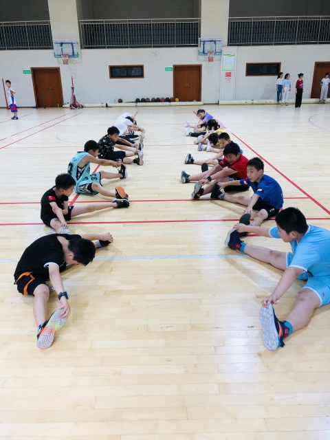 鄭州市金水區文化綠城小學籃球社團學生在進行熱身訓練(學校供圖)