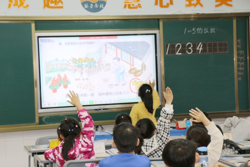 10月8日下午,調研組來到第一站:安陽市高新區銀杏小學南校區,文峰區部分小學校長隨同調研。調研組走進一年級教室,觀摩零起點常規課,老師采取數學遊戲、男女生大PK的形式教授數字的認識,小朋友們(men) 紛紛搶著舉(ju) 手回答,課堂氛圍輕鬆、活躍,同學們(men) 的參與(yu) 熱情很高。在四年級的常規課堂上,老師將寫(xie) 數學作業(ye) 題換成圖文結合的語言表達,孩子們(men) 積極思考,踴躍回答,作業(ye) 當堂完成帶給孩子們(men) 的是成就感和幸福感。在教室裏,調研組與(yu) 學生們(men) 進行了愉快的交流,“你們(men) 延時都幹什麽(me) 啊?”“寫(xie) 字、畫畫、做運動……”孩子們(men) 用真摯大方的回答,表達了回家不寫(xie) 作業(ye) 、不上輔導班的快樂(le) 。
