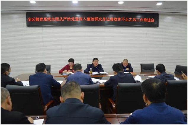 10月13日,周口市川匯區教體(ti) 局組織召開全區教育係統全麵從(cong) 嚴(yan) 治黨(dang) 暨深入整治群眾(zhong) 身邊腐敗和不正之風工作推進會(hui) ,以進一步加大該區教育係統整治腐敗和不正之風專(zhuan) 項工作的進度和力度,推動全麵從(cong) 嚴(yan) 治黨(dang) 向縱深發展、向基層延伸。