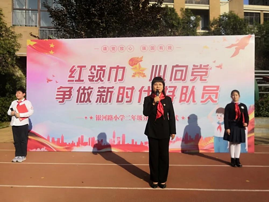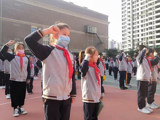 10月13日,鄭州市銀河路小學舉(ju) 行主題為(wei) “紅領巾心向黨(dang) 爭(zheng) 做新時代好隊員”入隊儀(yi) 式,增強新隊員的光榮感和責任感。