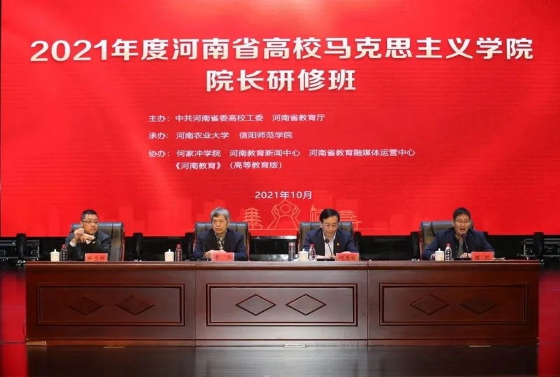 10月18日,2021年度河南省高校馬克思主義(yi) 學院院長研修班在信陽何家衝(chong) 學院開班。省委高校工委專(zhuan) 職委員何秀敏、信陽師範學院院長李俊等出席開班儀(yi) 式。省委高校工委、省教育廳思想政治工作處處長陳凱主持。
