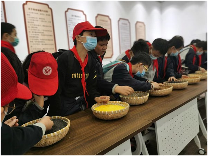 在河南糧食宣教館,同學們(men) 通過觀看視頻、聆聽宣講、親(qin) 手觸摸等方式了解糧食現狀、糧食知識、節糧意義(yi) ;在淺圓倉(cang) 、平房倉(cang) 、立儲(chu) 倉(cang) 等大型糧倉(cang) 現場,孩子們(men) 近距離感受空調控溫、智能通風、穀物冷卻等綠色儲(chu) 糧新技術,了解糧食儲(chu) 藏、除蟲、防潮、恒溫等方法,接觸到糧食收購係統、遠程監控係統、儲(chu) 量運輸係統、地籠通風等“黑科技”。親(qin) 手觸摸到一粒粒糧食,孩子們(men) 顯得特別興(xing) 奮:“原來稻穀是這個(ge) 樣子呀!”“以前隻知道農(nong) 民伯伯種糧食很辛苦,沒想到儲(chu) 備糧食也這麽(me) 不容易。食為(wei) 政首,糧安天下。以後吃飯的時候一定要吃多少盛多少,不能浪費。”