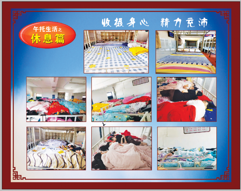 為(wei) 了解決(jue) 學生趴在課桌上休息、影響身體(ti) 健康情況,學校出資5萬(wan) 餘(yu) 元給學生配備床位,擠出學校的每一個(ge) 可利用的空間安裝高低床、配置冷暖空調,並組織專(zhuan) 門老師教室陪寢,維持學生午休秩序。午休結束後,學生回到教師,由任課老師安排進行40分鍾左右的午間輔導,就上午學習(xi) 的課程進行複習(xi) 、或進行閱讀分享等。