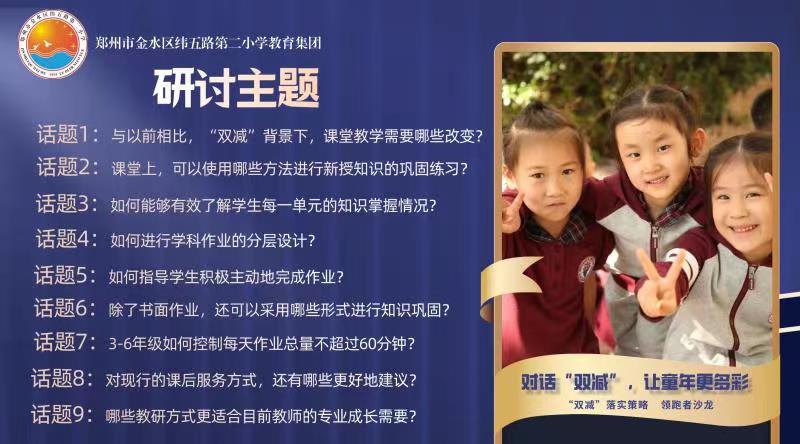 隨著“雙減”政策的頒布,校外,教培時代宣告結束,校內(nei) ,未來教育形式方興(xing) 未艾。身處“風暴”中心的公辦學校校長、教師,既要謀劃“減法”之後孩子如何成長的新規劃,又要麵臨(lin) “加法”之下課程內(nei) 容、課堂結構、課後服務、家校共建的新課題。如何逆風向前、速度不減地跑出一場屬於(yu) 教育人“雙減”之下的馬拉鬆?2021年11月11日,鄭州市金水區緯五路第二小學教育集團組織召開“雙減”落實策略研討會(hui) ,校長、年級長、教師匯聚一堂,舉(ju) 行了一場“雙減”思辨圓桌會(hui) 。