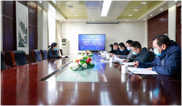 減輕義(yi) 務教育階段學生作業(ye) 負擔和校外培訓負擔,是國家的一項重大決(jue) 策部署,事關(guan) 學生身心健康,事關(guan) 義(yi) 務教育高質量發展。“雙減”不僅(jin) 是教育格局的重大調整,更是教育觀念的深刻革新,是教育公平的重大舉(ju) 措。鄭州市第四十七初級中學黨(dang) 總支書(shu) 記、校長夏霞在金水區“雙減”工作會(hui) 議上,代表金水區義(yi) 務教務階段學校就“雙減”工作開展進行了精彩匯報,並對“雙減”如何進一步落地進行表態發言。11月15-16日,夏校長把區政府、區教育局的“雙減”工作精神傳(chuan) 達到學校每一位師生,並在全校開展“雙減”工作“大學習(xi) 、大討論”活動。