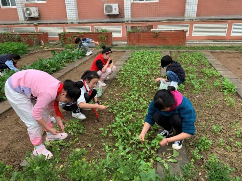 其次,充分挖掘學校資源優(you) 勢,利用下午延時服務時段讓孩子們(men) 參與(yu) 到集體(ti) 勞動中,感受集體(ti) 勞動的快樂(le) 。學校北邊的“東(dong) 籬園”是孩子們(men) 的勞動基地,孩子們(men) 可以種植蔬菜,收獲蔬菜,售賣蔬菜,在這裏孩子們(men) 流下汗水,收獲成長。學校的餐廳現在也成為(wei) 了孩子們(men) “百穀小課堂”的勞動教育基地,下午延時時段,各班可以輪流到餐廳跟著餐廳大廚們(men) 學習(xi) 製作美食,吃著香香的蔥油餅是孩子們(men) 最幸福的時刻。無論是東(dong) 籬園還是學校餐廳都讓孩子們(men) 感受到了勞動可以創造美好生活,明白了一粥一飯來之不易。