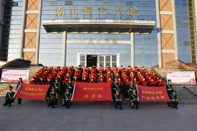 為(wei) 認真學習(xi) 貫徹習(xi) 近平法治思想,深入貫徹落實黨(dang) 的十九屆六中全會(hui) 精神,維護憲法權威,12月4日,南陽師範學院開展第八屆國家憲法日“憲法晨讀”活動。