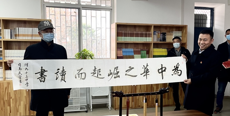 中國硬筆書(shu) 法家協會(hui) 副主席、河南省硬筆書(shu) 法家協會(hui) 主席司馬武當向學校題贈書(shu) 法作品
