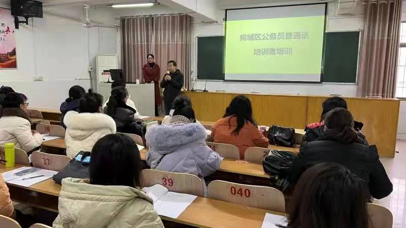 12月16日,南陽市宛城區開展公務員普通話培訓者培訓,來自全區教育係統的82名普通話培訓者參加培訓。此次培訓旨在深入貫徹《國務院辦公廳關(guan) 於(yu) 全麵加強新時代語言文字工作的意見》,大力推廣國家通用語言文字,全麵提升普通話培訓者的工作理念和業(ye) 務素質,為(wei) 進一步做好全區普通話推廣普及工作培養(yang) 一批“種子教師”。