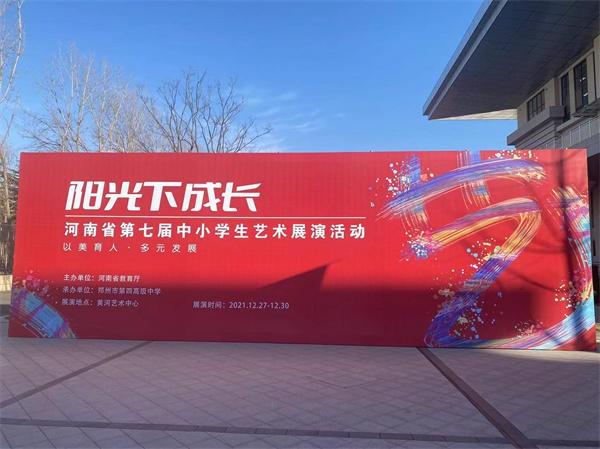 為(wei) 進一步展示河南省中小學藝術教育成果,12月27日至12月30日,河南省第七屆中小學生藝術展演活動(舞蹈專(zhuan) 場、戲劇與(yu) 朗誦專(zhuan) 場、聲樂(le) 專(zhuan) 場、器樂(le) 專(zhuan) 場)在鄭州市第四高級中學黃河藝術中心舉(ju) 行。全省中小學共有67個(ge) 節目參加展演和錄製。