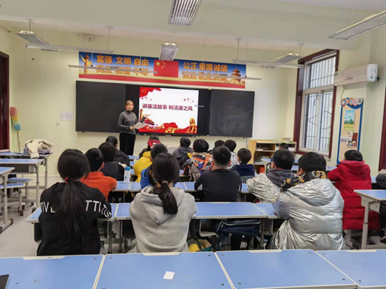 學校黨(dang) 員教師精心準備,圍繞清正廉潔主題,以曆史上廉政名人、中國共產(chan) 黨(dang) 革命先驅和身邊的楷模為(wei) 例,給學生講解適合小學生年齡特點的廉潔故事,將一個(ge) 個(ge) 鮮明的形象展現在學生麵前,傳(chuan) 頌廉潔美德和價(jia) 值。課堂上,孩子們(men) 聽得全神貫注,深受感染,紛紛表示將來一定要做堂堂正正、廉潔奉公、無私奉獻的人。