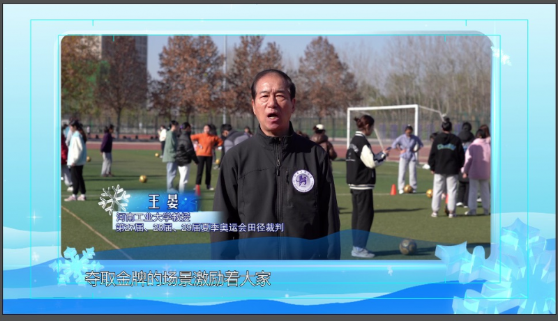 2021年12月31日,中國教育電視台主辦的《冰雪之約:一起向未來青春歌會(hui) 》首播,河南工業(ye) 大學原創作品《光點》作為(wei) 河南唯一代表,和首都師範大學、國防科技大學等15家高校同台演出。三屆奧運會(hui) 裁判、河南工業(ye) 大學體(ti) 育學院王晏教授和“一帶一路”國家留學生一起,寄語北京冬奧會(hui) 、冬殘奧會(hui) 。