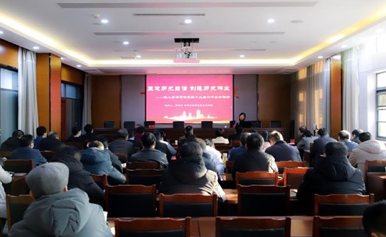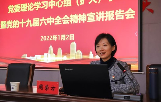 為(wei) 深入學習(xi) 貫徹黨(dang) 的十九屆六中全會(hui) 精神,引導廣大黨(dang) 員幹部群眾(zhong) 把思想和行動統一到全會(hui) 精神上來,按照省委高校工委安排部署,1月2日,省委宣講團成員、鄭州大學馬克思主義(yi) 學院副教授周榮方到焦作師範高等專(zhuan) 科學校,宣講黨(dang) 的十九屆六中全會(hui) 精神。校長田道敏出席會(hui) 議,學校黨(dang) 委理論學習(xi) 中心組成員、全體(ti) 中層幹部等參加會(hui) 議,集體(ti) 學習(xi) 聆聽專(zhuan) 家報告。校黨(dang) 委副書(shu) 記、工會(hui) 主席靳賢勝主持會(hui) 議。