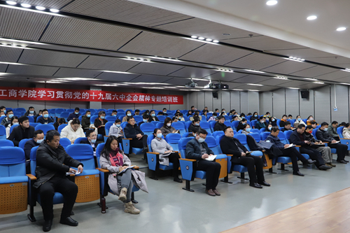 為(wei) 深入學習(xi) 貫徹黨(dang) 的十九屆六中全會(hui) 精神,進一步動員學校黨(dang) 員幹部師生切實用全會(hui) 精神統一思想、凝聚力量、指導實踐、推動發展,12月31日,鄭州工商學院在圖書(shu) 館五樓動感劇場舉(ju) 辦學習(xi) 黨(dang) 的十九屆六中全會(hui) 精神幹部培訓班。全體(ti) 校領導、科級以上幹部參加培訓。培訓班由校長郭德欣主持。