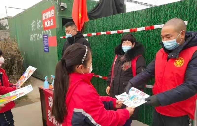 她們(men) 的想法得到了老師的支持,當日上午,姚孟小學師生來到姚孟村疫情防控崗,為(wei) 他們(men) 帶去了食物和飲用水,向大家道一聲辛苦了!“在村口,你們(men) 放棄春節團聚機會(hui) ,頂寒風冒嚴(yan) 寒,戰鬥在防控一線,嗬護全村人的平安。我們(men) 看在眼裏,感動在心裏,病毒無情人有情,感謝你們(men) !有你們(men) 的努力和無私奉獻,才有我們(men) 廣大村民的祥和安康……”王詩迪朗讀了感恩信《致敬疫情防控誌願者》,表達著誠摯的問候和由衷的敬意。
