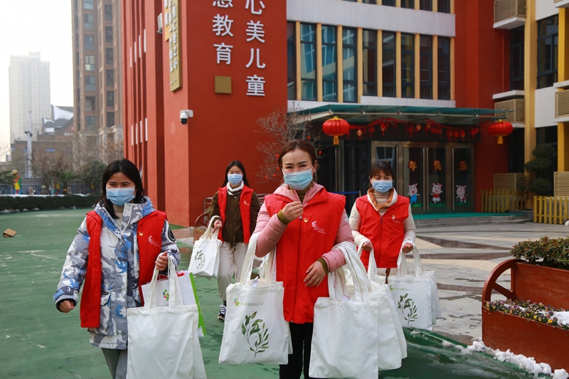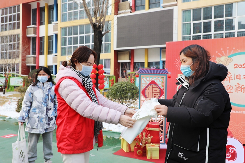 為(wei) 保證活動的順利展開,鄭州市鄭東(dong) 新區普惠路第二幼兒(er) 園黨(dang) 員、教師充分準備相應物品,喜氣盈盈的春聯、齊全的防疫物資、溫暖的手套、環保布織袋等,為(wei) 冬日依然堅守崗位的工作人員、社區老人送去新春祝福。