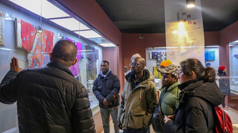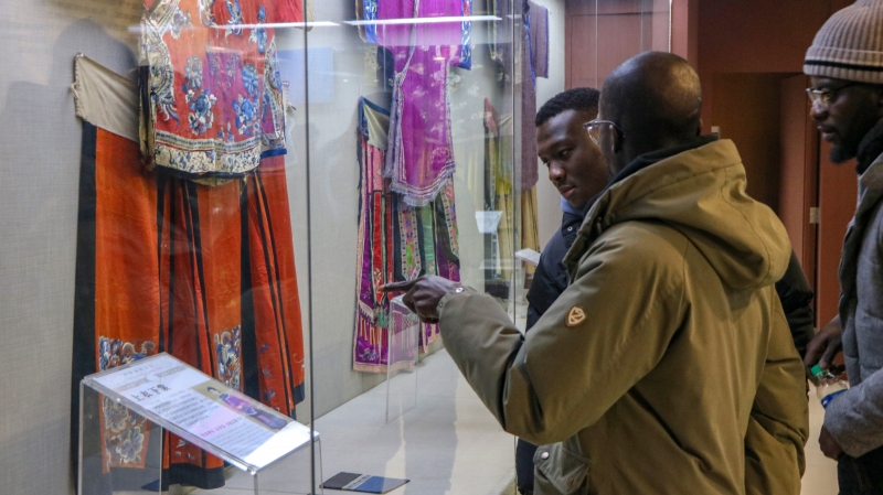 師生一起觀看清末服飾介紹紀錄片,在相互交流中加深對中華傳(chuan) 統服飾的了解。在中原服飾文化館,師生近距離感受中華傳(chuan) 統服飾的魅力,一絲(si) 一線、一形一物記錄著布料、染色、刺繡等技術工藝的發展和變遷,同時更是承載著對著衣人的祈福厚願、情意綿長。