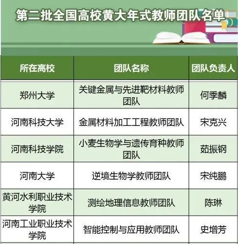 新年伊始,喜訊從(cong) 北京傳(chuan) 來——鄭州大學、河南科技大學、河南科技學院、河南大學、黃河水利職業(ye) 技術學院、河南工業(ye) 職業(ye) 技術學院等河南省高校的6個(ge) 團隊,入選第二批全國高校黃大年式教師團隊。