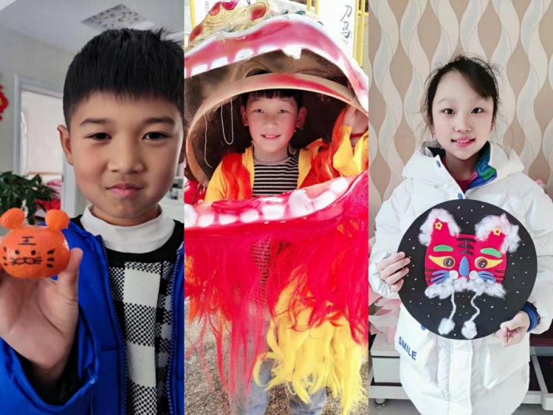 以“虎年”為(wei) 元素,畫虎、唱虎、剪虎、做虎頭和虎燈籠……收集春聯,和家人一起貼春聯,寫(xie) 福字,收集“中國年”的相關(guan) 知識製作圖文並茂的手抄報,可以將自己的對新年的祝福和期盼寓於(yu) 其中。